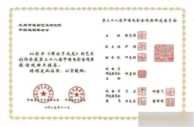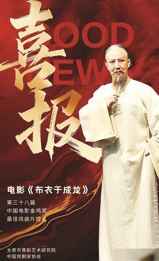 本报讯近日,第三十八届中国电影金鸡奖提名名单在厦门海峡大剧院揭晓,由太原市晋剧艺术研究院、中国戏剧家协会等单位联合出品的晋剧电影《布衣于成龙》荣获“最佳戏曲片”提名。这是继2015年晋剧电影《傅山进京》获得提名后,山西戏曲电影时隔十年再次获得这一中国电影界权威奖项的肯定,标志着晋剧艺术在影视化传承与创新方面取得重要突破。