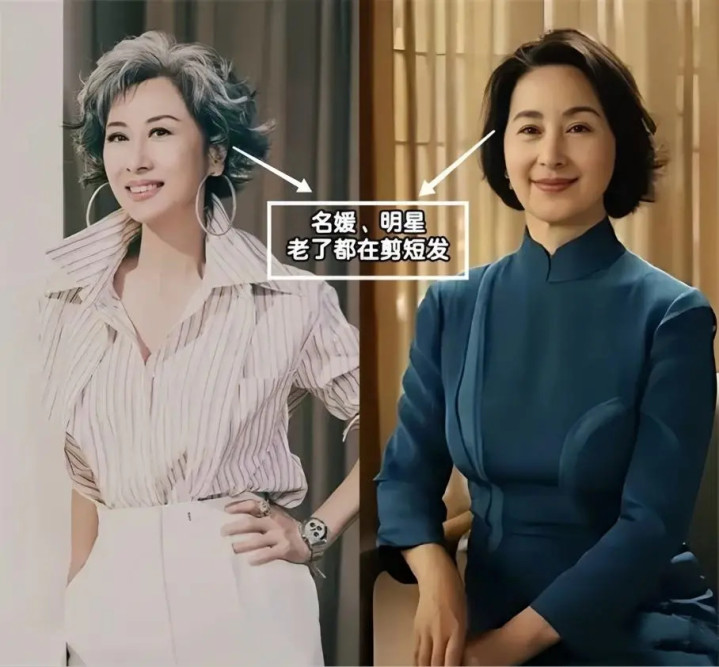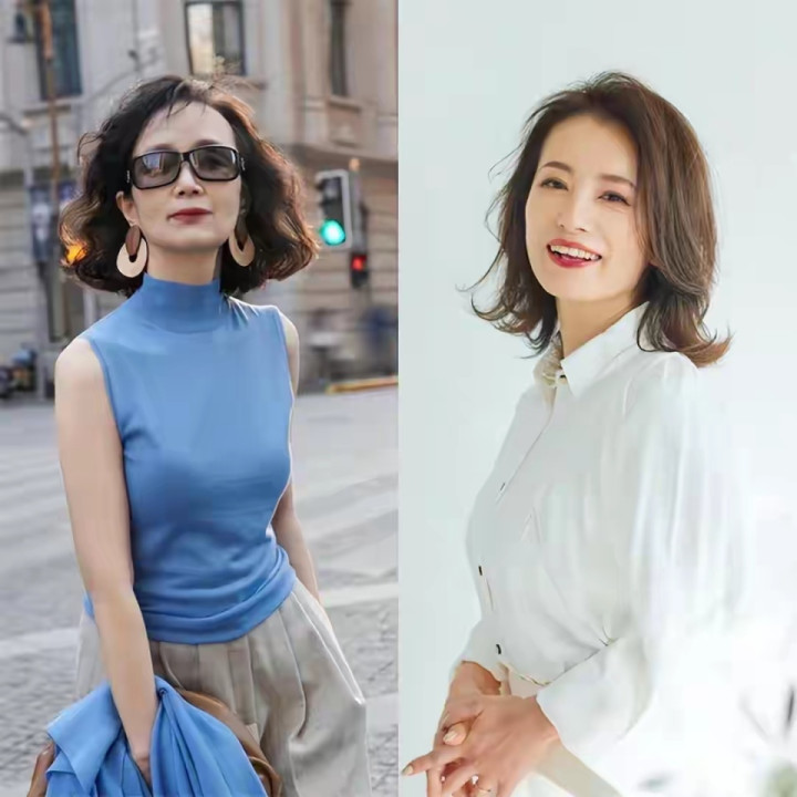 还不如简简单单的一件纯色系的衬衫,搭配上黑色的西装裤,加上一款蓬松的短发造型,甚至白头发都不用染,看起来优雅得体又大方。