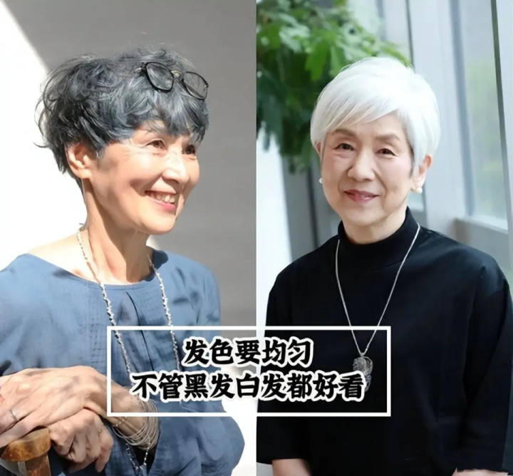 不过虽然不染白发,但一定要明白一点,头发的发色要均匀,不管是黑发还是白发都好看,发型打理对了,剪超短发也很适合中老年女性,看起来是那么的有精神。