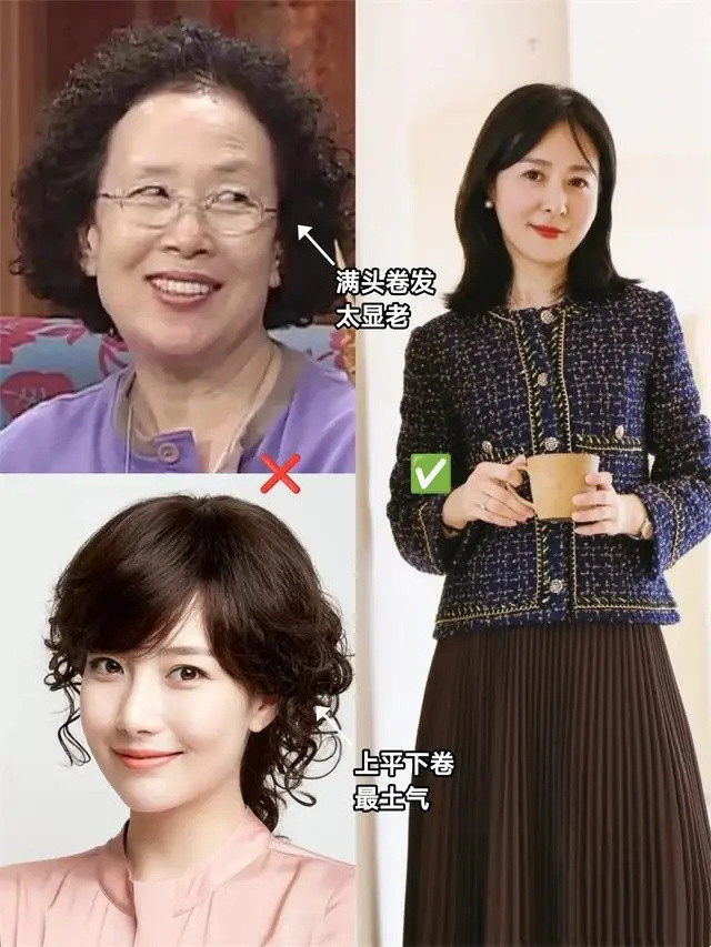 不光我们的头发,不能是满头的小卷发,很老气,甚至我们尽量也不要穿那种老年装,花哨的衣服,艳丽的衣服,尽量不穿。