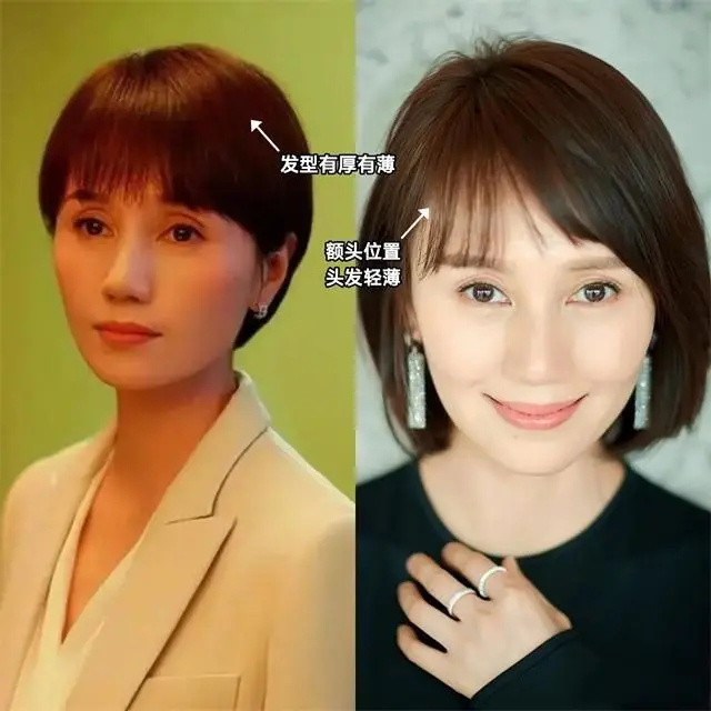 袁泉还会留一款刘海来修饰自己的额头和发际线,不过她的刘海虽然是齐刘海,不会选择剪的太厚的款式,你一眼看上去的时候,有点轻薄,这样确实是当下比较流行的刘海剪法。